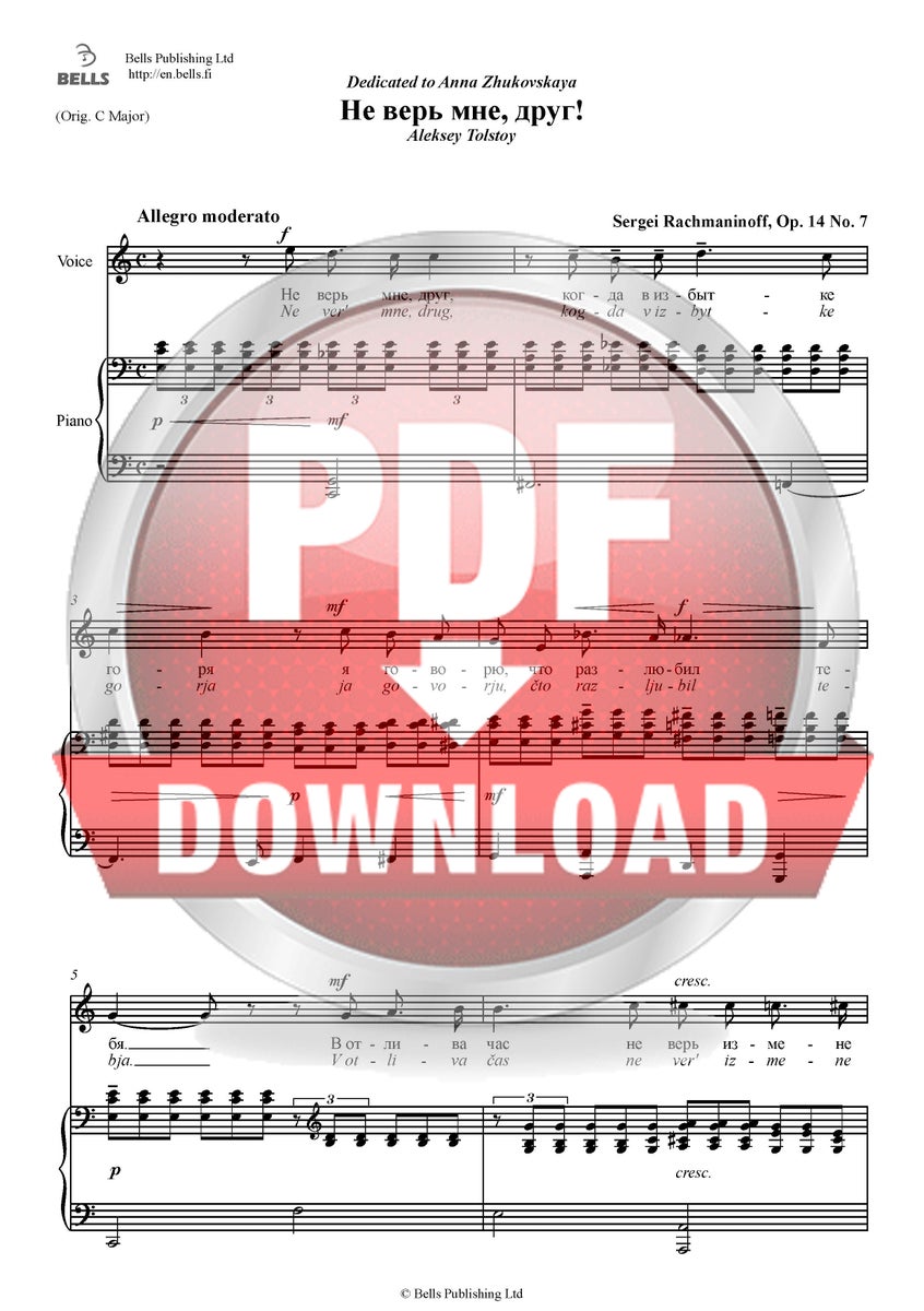 Serguéi Rajmáninov: Ne ver' mne, drug!, Op. 14 n.º 7 (Не верь мне, друг!) (letra de Aleksej Tolstoj)